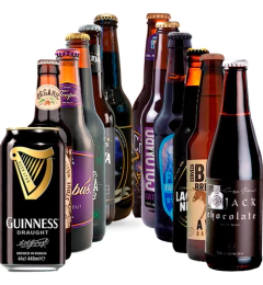 12 Cervezas de estilo Stout con notas y sabores achocolatados, el paquete incluye: